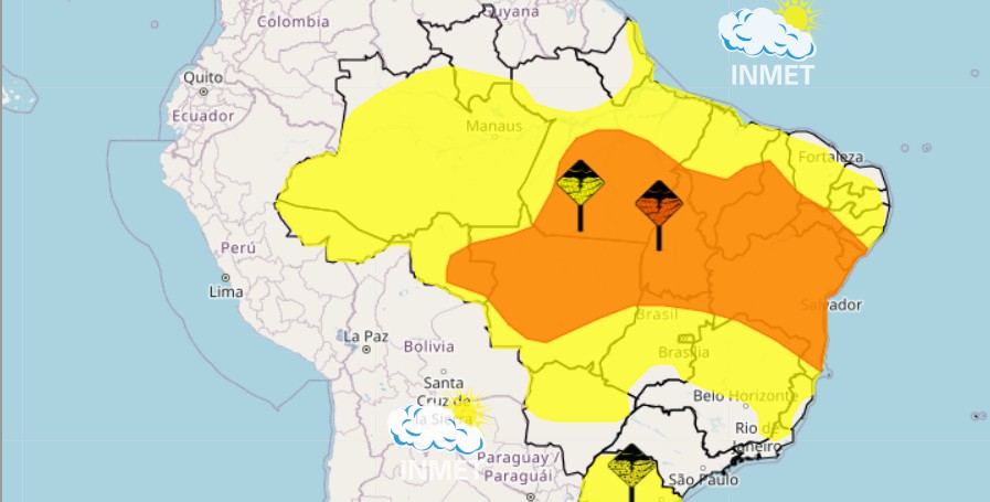 Alertas emitidos pelo Inmet encobrem o Tocantins