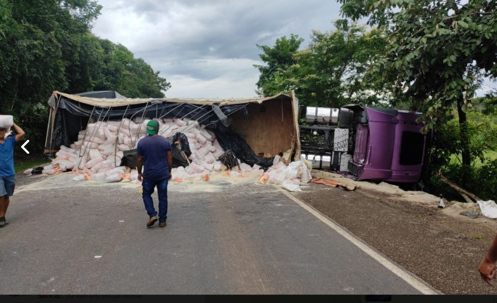 Um acidente na manhã deste domingo (16) causou a interdição total da BR-153, no km 535, em Nova Rosalândia, no centro-oeste do estado. O bloqueio aconteceu depois que um caminhão tombou e ficou atravessado na pista.
