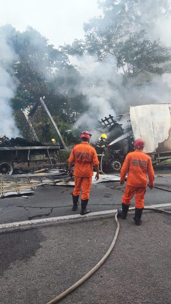 Dois caminhões estavam parados na fila quando, segundo a Polícia Rodoviária Federal um terceiro veículo, onde a vítima estava, não conseguiu frear a tempo e bateu em outro caminhão. Esse mesmo veículo começou a pegar fogo junto com o segundo, que estava no meio dos caminhões.