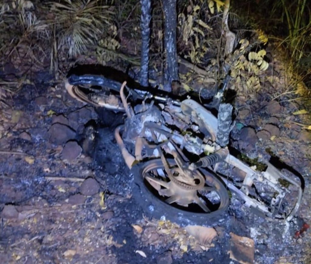 Moto da vítima foi incendiada no local do crime